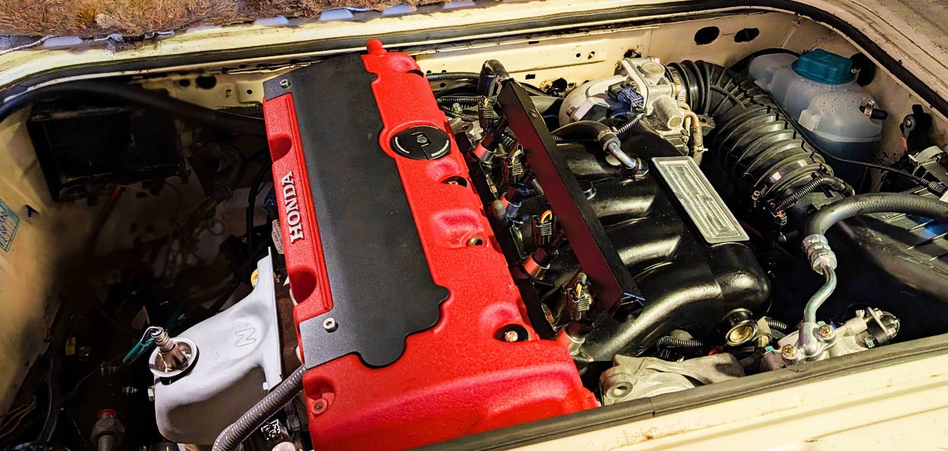 The install is compact, clean, and clever. The engine cradle is a great design, leaving lots of room in the engine bay, and everything looks neat and organized. At the time of the install, we also did an overhaul of the coolant system, including stainless coolant pipes and a separate auto-transmission cooler. What that means in practical terms is that so many of the things I’ve worried about failing for years are all brand new, or Honda-reliable. It’s a pretty amazing feeling.